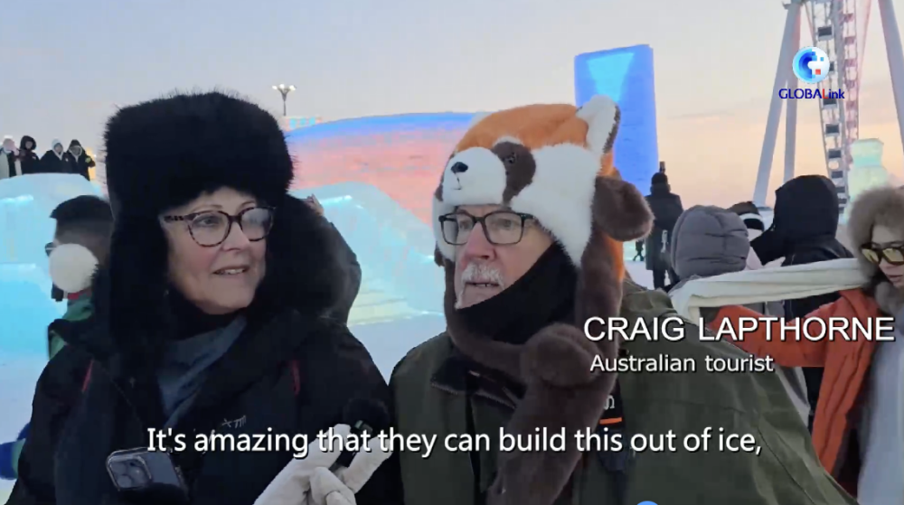 一旁的克雷格·拉普索恩頭戴俏皮卡通棉帽,同樣十分感慨。他驚嘆于能工巧匠們用冰雪構(gòu)筑如此繁多的美麗景觀,不可思議之感溢于言表。他還留意到哈爾濱冰雪大世界為成人與兒童精心配備冰上自行車等娛樂設(shè)施,深感此地適宜全家出游,讓每一位家庭成員都能投身冰雪運(yùn)動(dòng),暢享冰雪王國(guó)的歡樂氛圍。