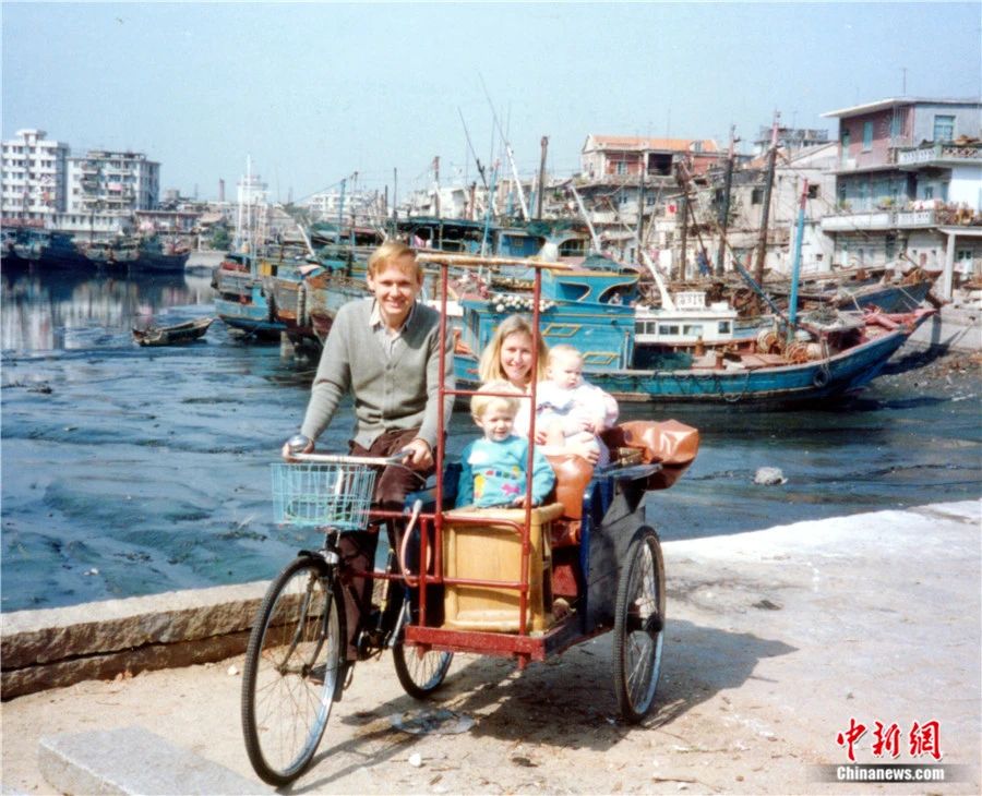 1988年,潘維廉騎著三輪車帶著家人走遍廈門(mén)的大街小巷。受訪者供圖