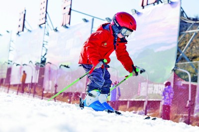 小朋友在湖北省宜昌市夷陵區(qū)百里荒滑雪場體驗滑雪。新華社發(fā)