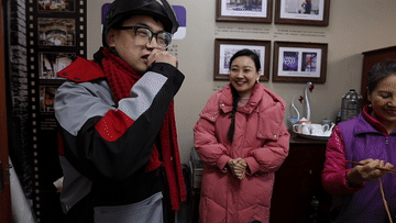 張德?tīng)氖秦?fù)責(zé)天津市河北區(qū)望海樓街道昆云里社區(qū)快件派送的快遞員。最近,他每天都系著一條紅圍巾,在街道上格外引人注目。張德?tīng)牟弊由蠂倪@條紅圍巾就是社區(qū)志愿者大姨們親手織的。社區(qū)工會(huì)驛站將圍巾送給了他,以此來(lái)感謝他對(duì)社區(qū)的無(wú)私奉獻(xiàn)。