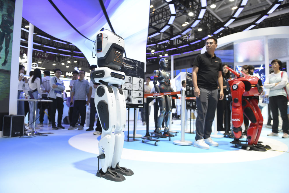 在深圳舉行的第二十六屆中國國際高新技術成果交易會上,深圳市眾擎機器人科技有限公司展示雙足機器人SA01的行走能力(2024年11月14日攝)。 新華社記者 毛思倩 攝