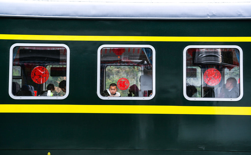 1月18日,在滬昆鐵路六個雞火車站,沿途村民乘坐5640次列車出行。新華社記者 楊文斌 攝