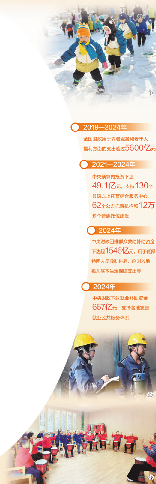 聚焦幼有所育,財(cái)稅部門(mén)也推出系列舉措。2021—2024年,中央預(yù)算內(nèi)投資下達(dá)49.1億元,支持130個(gè)縣級(jí)以上托育綜合服務(wù)中心、62個(gè)公辦托育機(jī)構(gòu)和12萬(wàn)多個(gè)普惠托位建設(shè),更好滿(mǎn)足群眾托育服務(wù)需求。