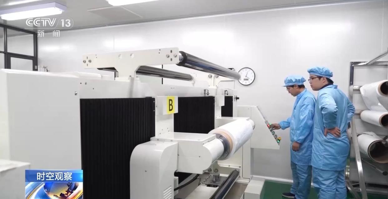 而在另一頭的這家固態(tài)電池配件制造企業(yè),一款固態(tài)無(wú)孔電解質(zhì)隔膜正在有序生產(chǎn)中。從基膜變身電解質(zhì)膜的質(zhì)變,關(guān)鍵就在于灰色的高分子材料,負(fù)責(zé)人告訴記者,這款材料能夠提升隔膜的安全性、可靠性并延長(zhǎng)使用壽命,很大程度保障了固態(tài)電池的制作所需。
