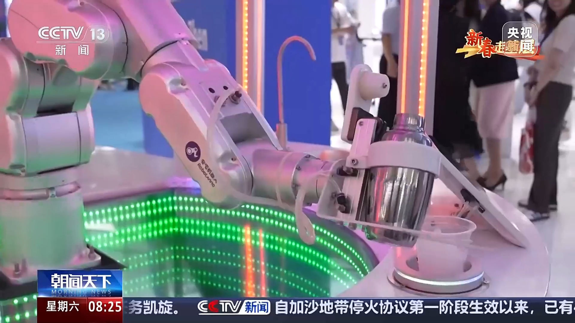 安諾機(jī)器人(深圳)有限公司創(chuàng)始人 黃煌:這些動(dòng)作都是我們提前通過(guò)捕捉好咖啡師的動(dòng)作,然后經(jīng)過(guò)訓(xùn)練之后來(lái)用機(jī)器人實(shí)現(xiàn)的,我們牛奶都將近用了三噸左右。