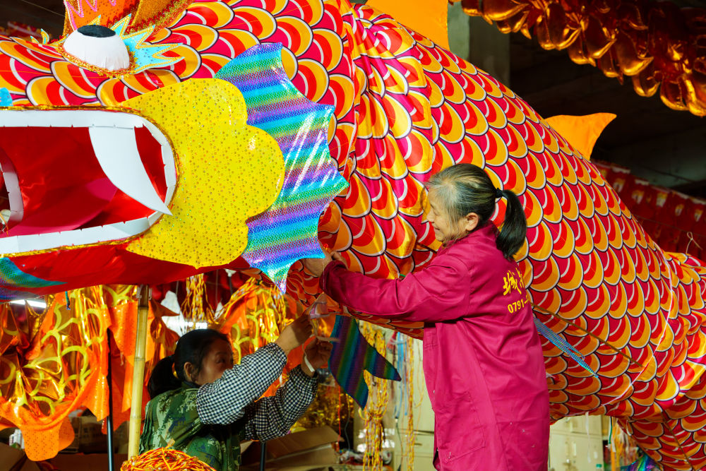 1月24日,城南龍燈廠2024年以來生產(chǎn)的第一萬條傳統(tǒng)龍燈,從陳列館中被“請”出。