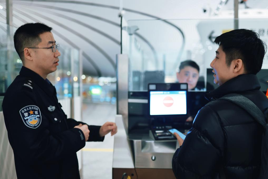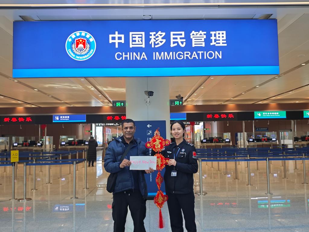 “歡迎回家!”“過年好!”“春節(jié)快樂!”移民管理警察的一聲聲問候,是旅客入境后感受到的第一縷中國溫暖。