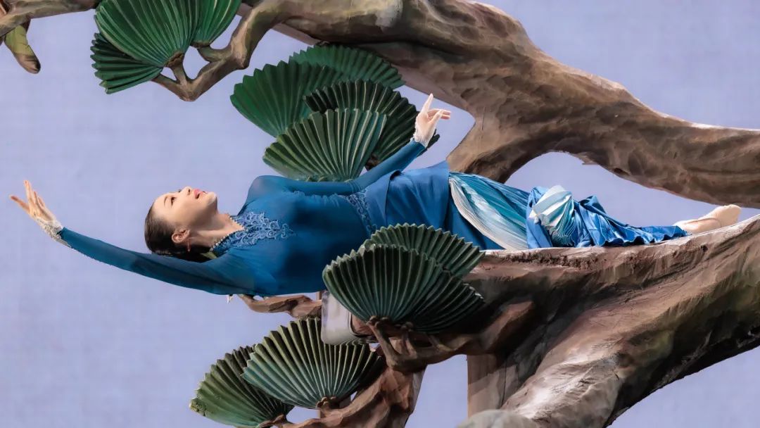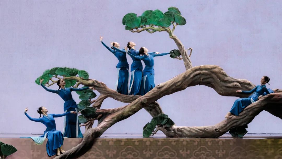 當(dāng)舞臺(tái)變成一方宋畫(huà)尺牘,背景成為留白氤氳的宣紙,舞者化作工筆描摹的墨痕,橫軸豎幔間,十只報(bào)春“喜鵲”從古卷中躍然而出。
