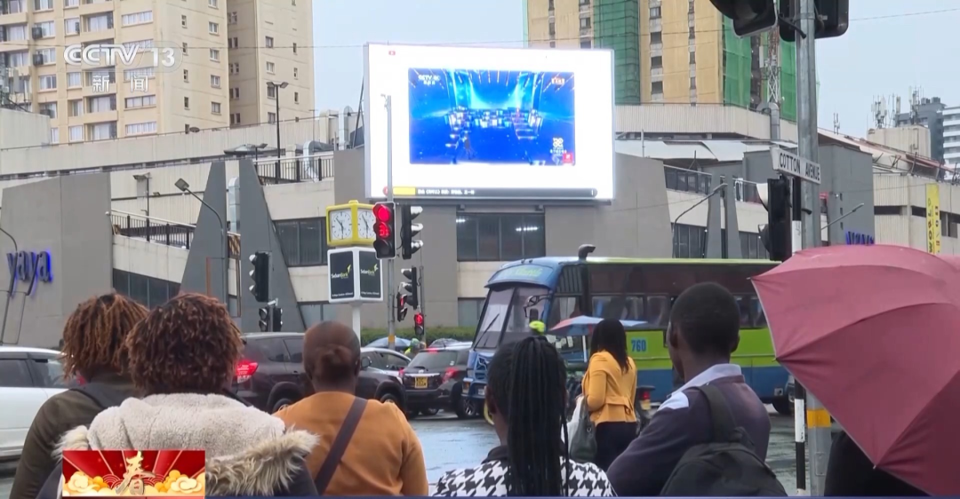 肯尼亞首都內(nèi)羅畢商場大屏播放總臺蛇年春晚