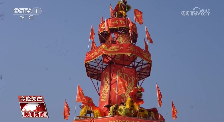 百獅齊舞迎新春,在河南漯河,一場(chǎng)非遺表演“九獅飛天”熱鬧上演。只見(jiàn)舞獅者腳踩空中繩索,跳躍、騰空,在17米高的“通天塔”上展開(kāi)了一場(chǎng)獅王爭(zhēng)霸賽。精彩的表演引得觀眾連聲叫好。