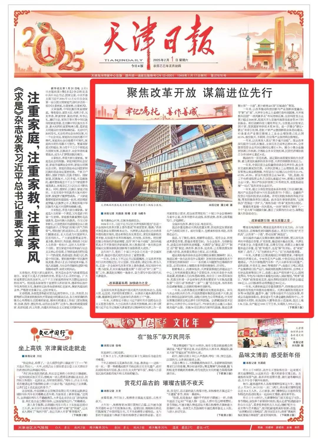 朝著難點(diǎn)上、向著深處改,天津緊緊圍繞經(jīng)濟(jì)建設(shè)這個(gè)中心工作和高質(zhì)量發(fā)展這個(gè)首要任務(wù),對標(biāo)對表黨中央改革部署,明確重點(diǎn)方向和思路舉措,細(xì)化分工329項(xiàng)具體任務(wù),把落實(shí)好進(jìn)一步全面深化改革部署要求與實(shí)施高質(zhì)量發(fā)展“十項(xiàng)行動(dòng)”和推進(jìn)“三新”“三量”結(jié)合起來,用改革的辦法破解難題、以創(chuàng)新的精神開創(chuàng)新局。