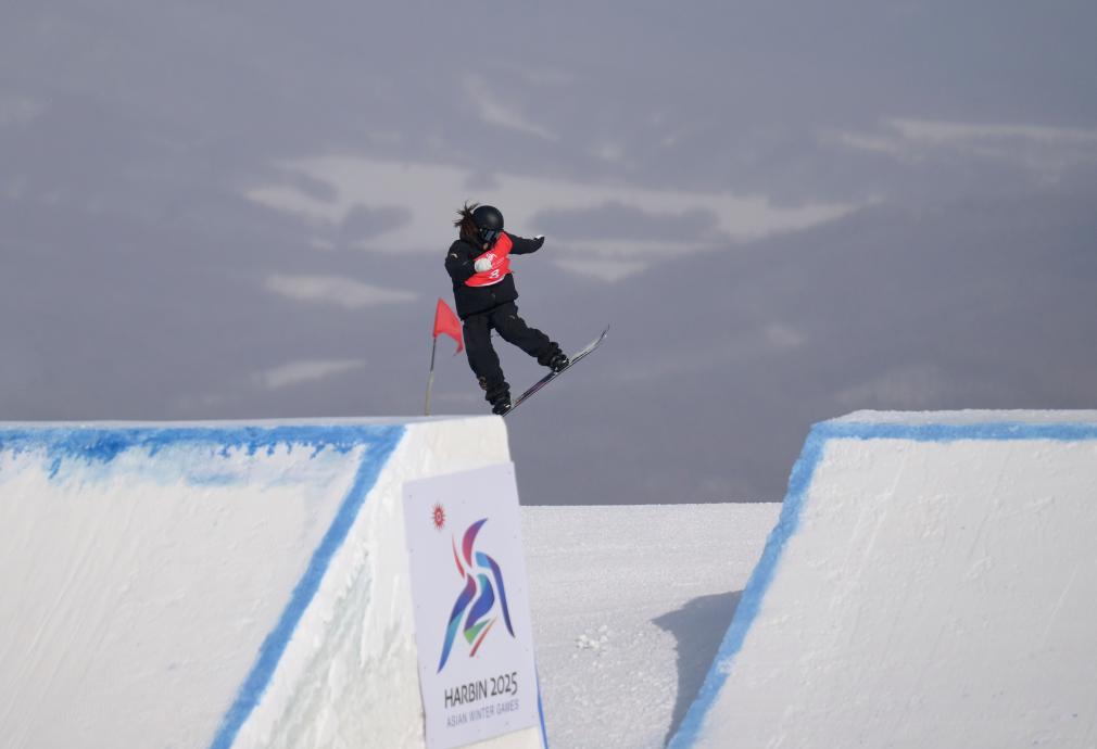 2月8日,張小楠在比賽中。當日,在黑龍江亞布力舉行的第九屆亞冬會單板滑雪女子坡面障礙技巧決賽中,中國選手張小楠、熊詩芮包攬金銀牌。新華社記者 牟宇 攝