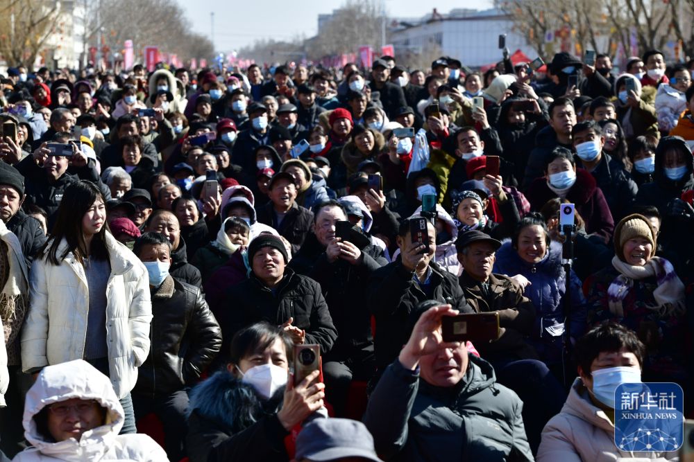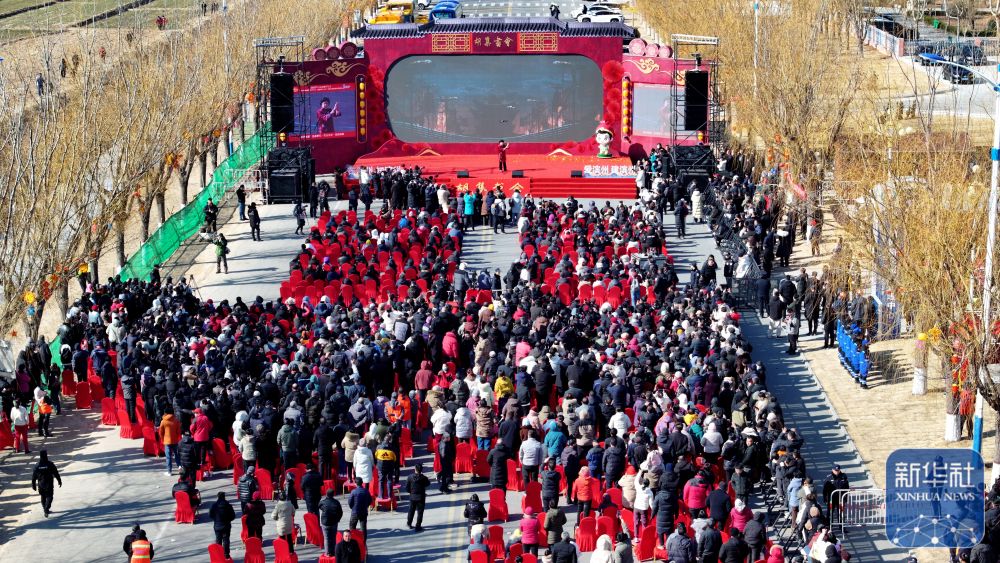 2月9日,觀眾在觀看中國(guó)曲協(xié)“送歡笑到基層”走進(jìn)惠民專(zhuān)場(chǎng)演出(無(wú)人機(jī)照片)。
