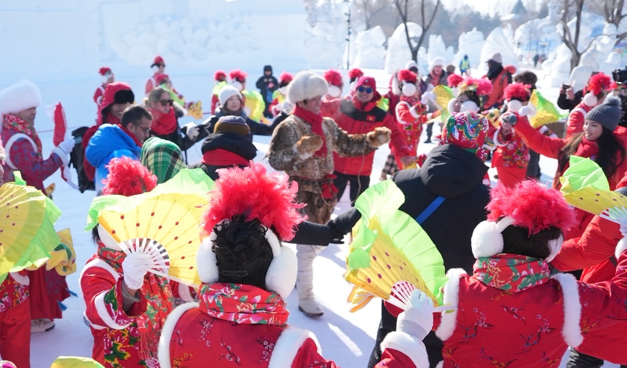 各國來賓與哈爾濱民間秧歌隊一同載歌載舞