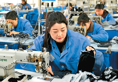 近日,在山東省濟(jì)寧市嘉祥縣的一家企業(yè)車間內(nèi),工作人員在縫制滑雪手套。作為中國(guó)重要的滑雪手套生產(chǎn)基地之一,嘉祥縣手套產(chǎn)品遠(yuǎn)銷60多個(gè)國(guó)家和地區(qū)。新華社記者 郭緒雷 攝