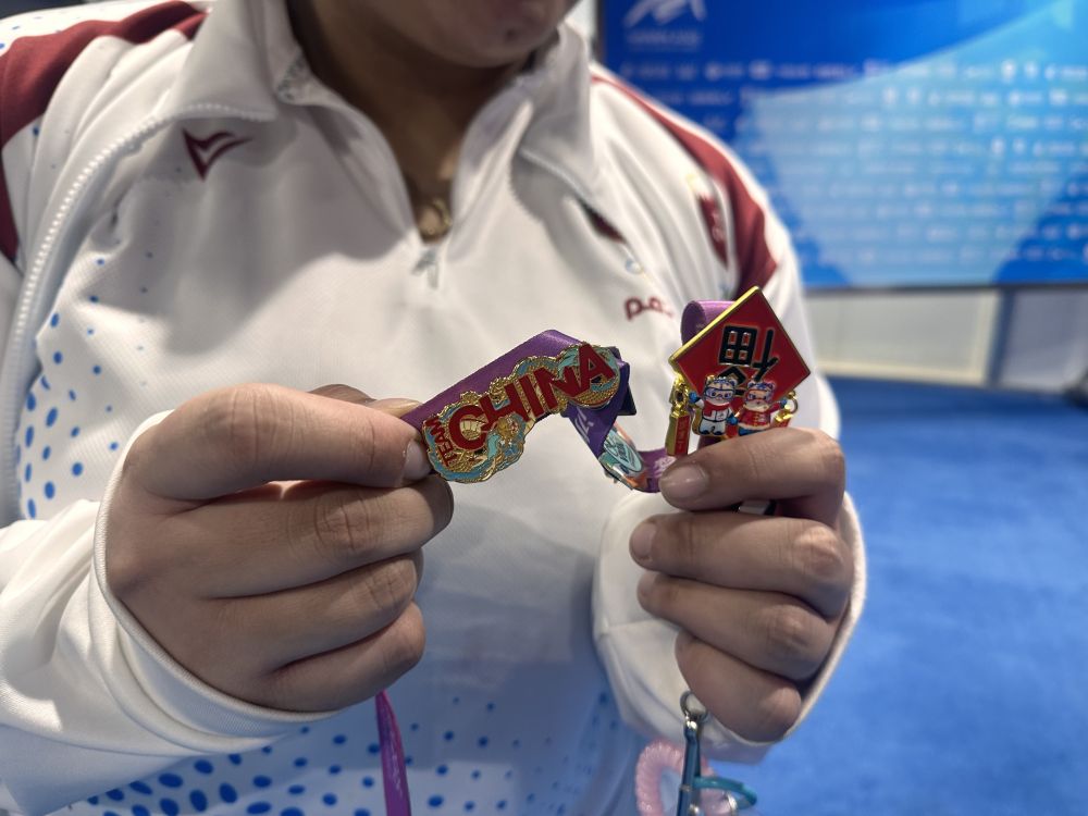 “這是我接機的時候,一名中國香港隊運動員送給我的,她很喜歡我的一個大熊貓‘pin’。”亞冬會志愿者翟晉涵展示著一枚中國香港代表團徽章說,“跟大家交換徽章真的很有意思。”