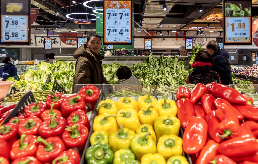 2月9日,消費(fèi)者在貴州省黔西市一家超市選購蔬菜。新華社發(fā)(范暉攝)