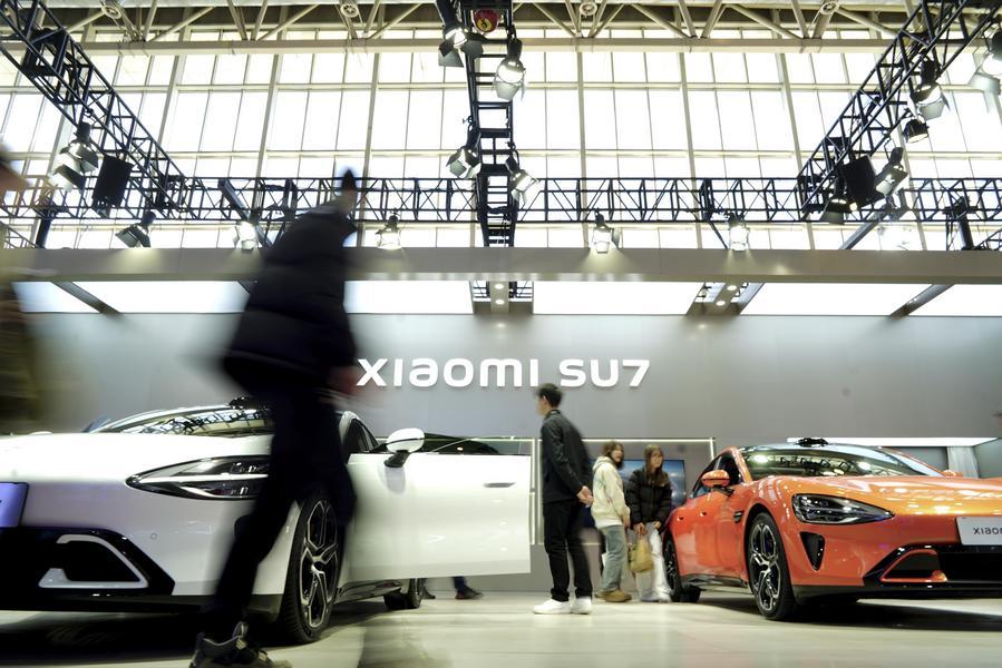 2024年11月28日,人們在第二屆中國國際供應(yīng)鏈促進博覽會智能汽車鏈展區(qū)小米汽車展臺參觀。新華社發(fā)(那宇奇攝)