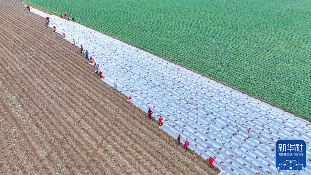 2月18日,在山東省滕州市界河鎮(zhèn)丁莊村,農(nóng)民在田間種土豆。