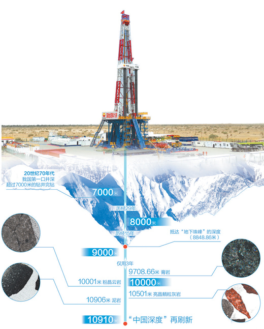 回望來路,20世紀70年代,我國第一口井深超過7000米的鉆井完鉆。從7000米到突破8000米,歷經(jīng)29年;從8000米到邁入9000米,歷經(jīng)15年;從9000米到?jīng)_破10000米大關,僅用3年。