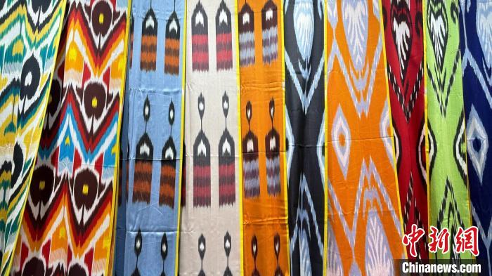 艾德萊斯綢各種花紋布料。受訪者供圖