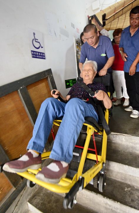 2024年7月11日,北京市朝陽區(qū)青年路社區(qū)一老舊小區(qū)居民在樓內(nèi)體驗(yàn)“爬樓機(jī)”。新華社記者 李欣 攝