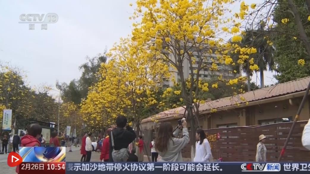 在廣東廣州市的洲頭咀公園,近1公里長的濱江步道上,黃花風(fēng)鈴木爭相盛開,宛如一條“黃金大道”,吸引了不少市民。除了賞花看景,當(dāng)?shù)剡€結(jié)合花期舉辦了各類文化活動,人們通過VR、AR等數(shù)字化技術(shù),沉浸式游覽公園周邊的文化街區(qū)場景。