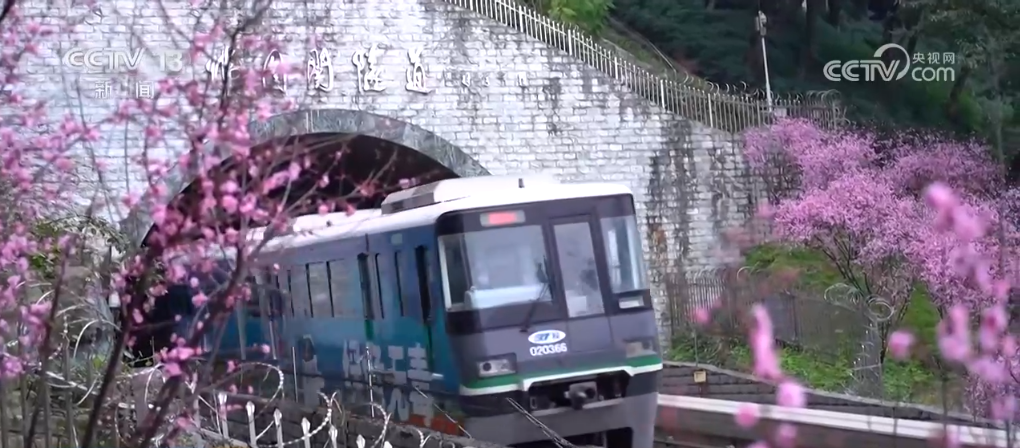 根據(jù)游覽標(biāo)識,順著半山崖線往下走,就能看到“開往春天的列車”。軌道交通2號線列車從一片粉色的花海中呼嘯而過,叢叢花海穿行其間,繪就了一幅爛漫的春景圖。目前,佛圖關(guān)公園的千株美人梅已盛開約80%,盛花期預(yù)計持續(xù)至3月中旬。