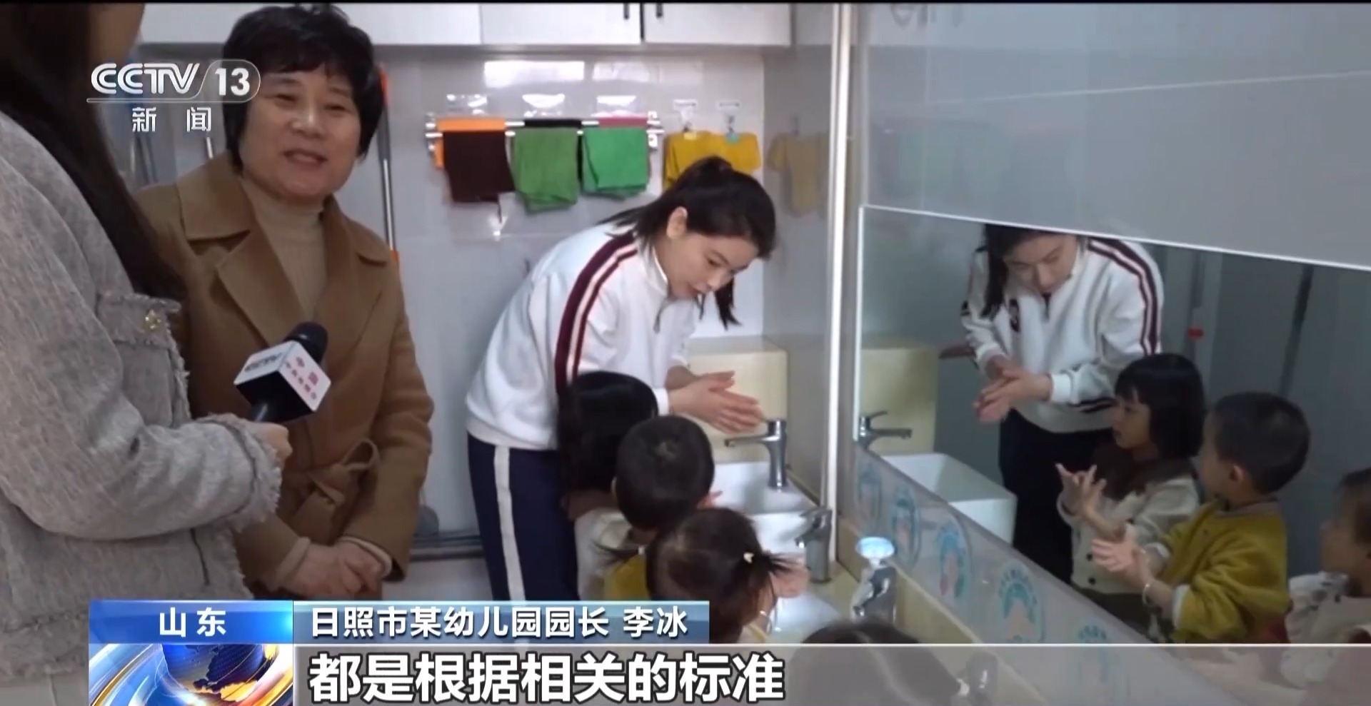 日照市某幼兒園園長 李冰:像這個盥洗室,包括孩子的廁所,都是根據(jù)相關(guān)的標(biāo)準(zhǔn)進(jìn)行改造的。