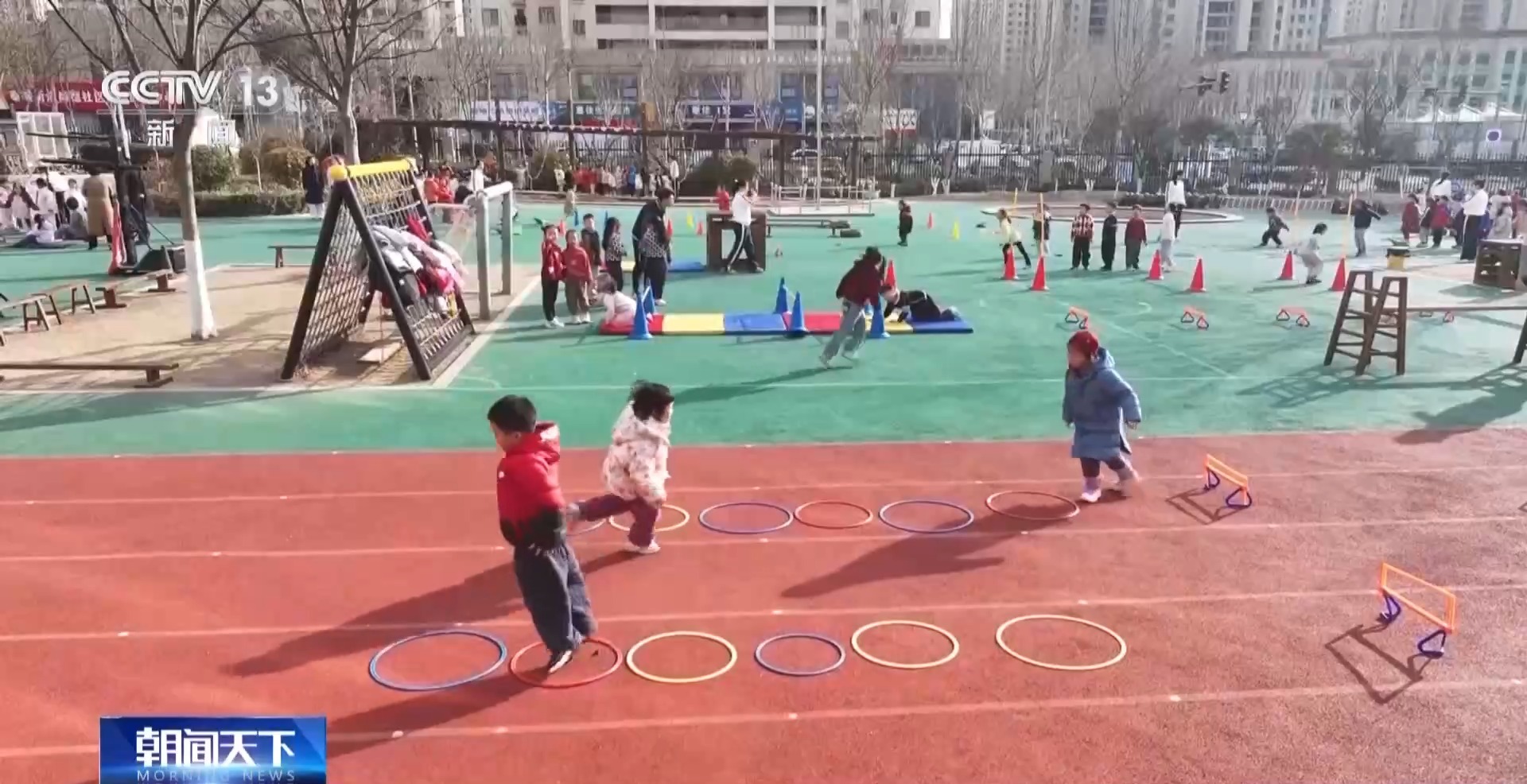 上午9時多,記者來到日照市的一家幼兒園時,孩子們正在做早操。這邊都是3歲以上幼兒園小班到大班的孩子。而在另一片場地,一群2歲多的托班“小小孩”,正在老師的帶領(lǐng)下做游戲。