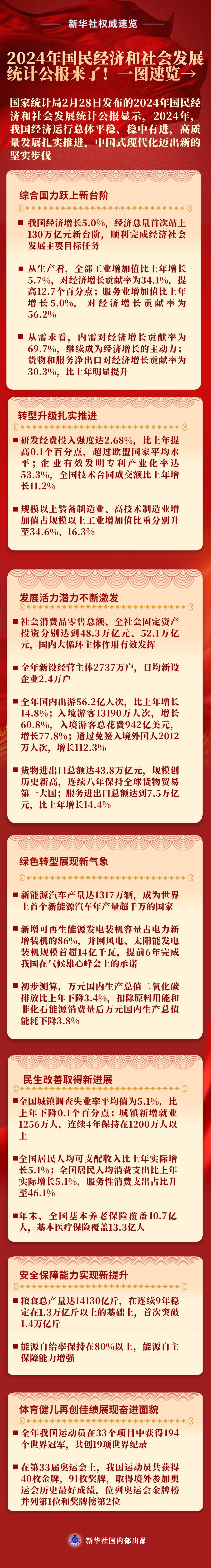 新華社權(quán)威速覽丨2024年國(guó)民經(jīng)濟(jì)和社會(huì)發(fā)展統(tǒng)計(jì)公報(bào)來(lái)了!一圖速覽→