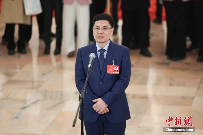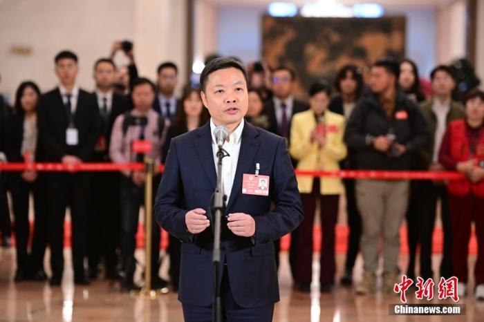 全國(guó)人大代表、廣東小鵬汽車科技有限公司董事長(zhǎng)何小鵬接受采訪。中新社記者 田雨昊 攝