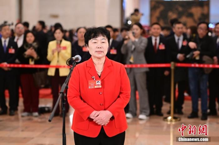 全國(guó)人大代表、天津東麗區(qū)華明街胡張莊村黨支部書記楊寶玲接受采訪。中新社記者 田雨昊 攝