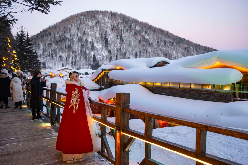 游客在“中國雪鄉(xiāng)”景區(qū)拍攝寫真。新華社記者謝劍飛 攝