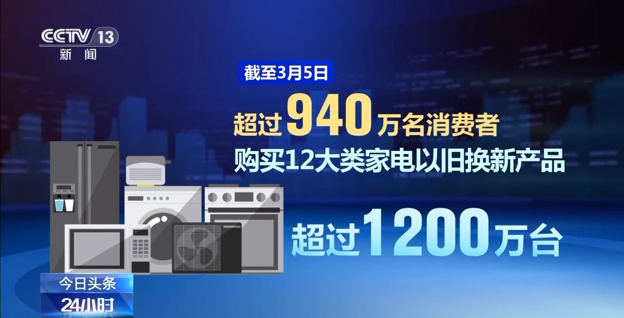 商務部數據顯示,截至3月5日,超過940萬名消費者購買12大類家電以舊換新產品超過1200萬臺,已有超過3400萬名消費者申請了超過4200萬件手機等數碼產品購新補貼。