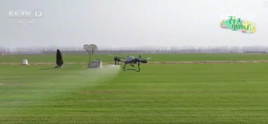 在山東濟南市,冬小麥正處于田間管理和產(chǎn)量形成的關鍵期,當?shù)剞r(nóng)技人員綜合利用植保無人機、水肥一體化智慧滴灌等科技手段,精細化開展田間管理。