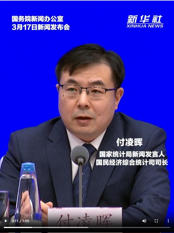 國家統(tǒng)計局新聞發(fā)言人、國民經(jīng)濟(jì)綜合統(tǒng)計司司長付凌暉表示,