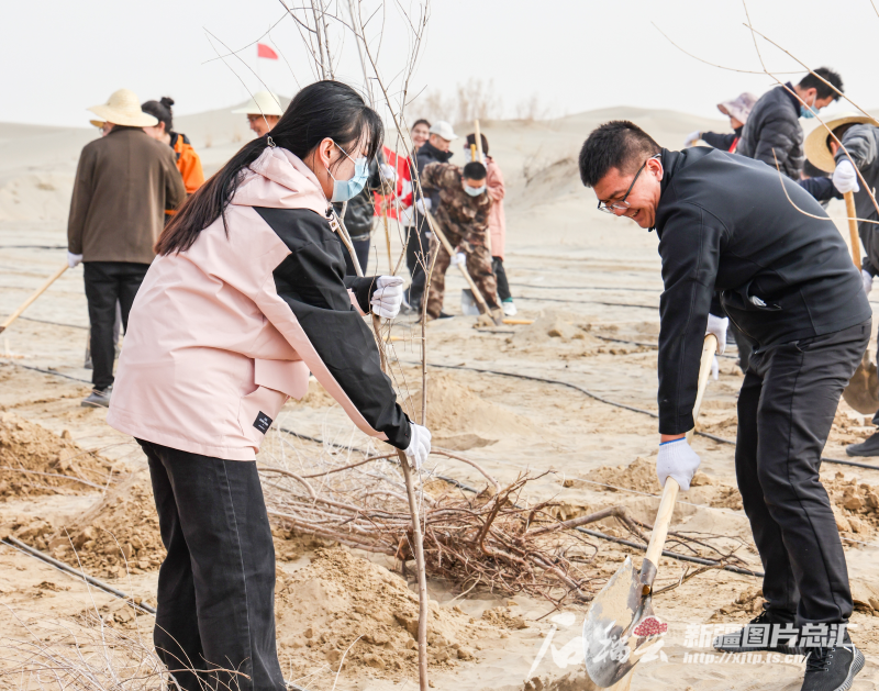 3月15日,在拜城縣亞吐爾鄉(xiāng)布吉尕村植樹現(xiàn)場,該村干部群眾精神抖擻,分工協(xié)作、默契配合,有的揮鍬鏟土,有的扶苗填坑,每道工序都認(rèn)真細(xì)致,現(xiàn)場一派熱火朝天的景象。