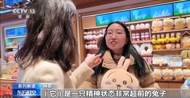 顧客:它是一只精神狀態(tài)非常超前的兔子,就是在生活當(dāng)中只要是自己開(kāi)心就可以了。所以我覺(jué)得對(duì)于當(dāng)代青少年或者當(dāng)代青年來(lái)說(shuō),不管是工作也好,上班上學(xué)也好,它這種心理狀態(tài)是非常好的。