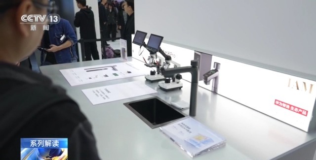 展館里AI賦能無(wú)處不在,就連不起眼的水龍頭,也應(yīng)用了人工智能技術(shù)。