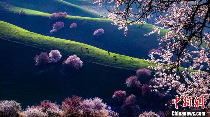 “春天賞花季。那拉提杏花谷的杏花,如粉色云霞般覆蓋整個(gè)山坡,3萬(wàn)多畝原始野杏林肆意綻放,浪漫至極。與此同時(shí),頂冰花也在頑強(qiáng)地破冰而出,黃白相間的小花點(diǎn)綴在草地上,與杏花遙相呼應(yīng)。”新源縣文化體育廣播電視和旅游局局長(zhǎng)劉幫說(shuō):“今年,我們特別推出了‘花漾新源’春季主題活動(dòng),包括杏花攝影大賽、草原花海露營(yíng)等深度體驗(yàn),邀請(qǐng)游客共赴這場(chǎng)雪山與花海交相輝映的春日盛宴。”