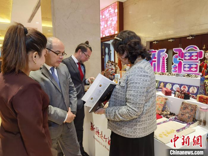 3月31日,新疆在北京舉辦有關(guān)國(guó)家駐華使節(jié)交流會(huì),來自43個(gè)國(guó)家和國(guó)際組織的70位外賓出席。圖為外賓在新疆特色產(chǎn)品展區(qū)參觀。 中新社記者 徐雪瑩 攝