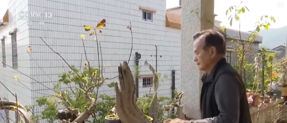 70歲的丁偉洪來自澳門。2024年,他在珠海金灣區(qū)三灶鎮(zhèn)木頭沖村租下了一套石頭屋。經(jīng)過簡(jiǎn)單裝修改造后,丁偉洪在這里養(yǎng)花、種菜,制作根雕,生活非常愜意。