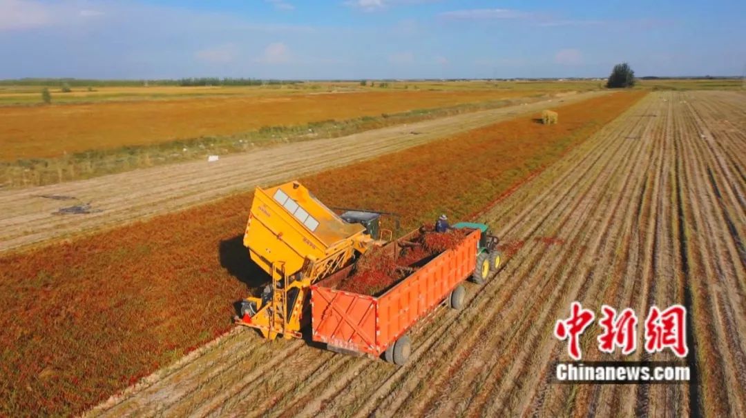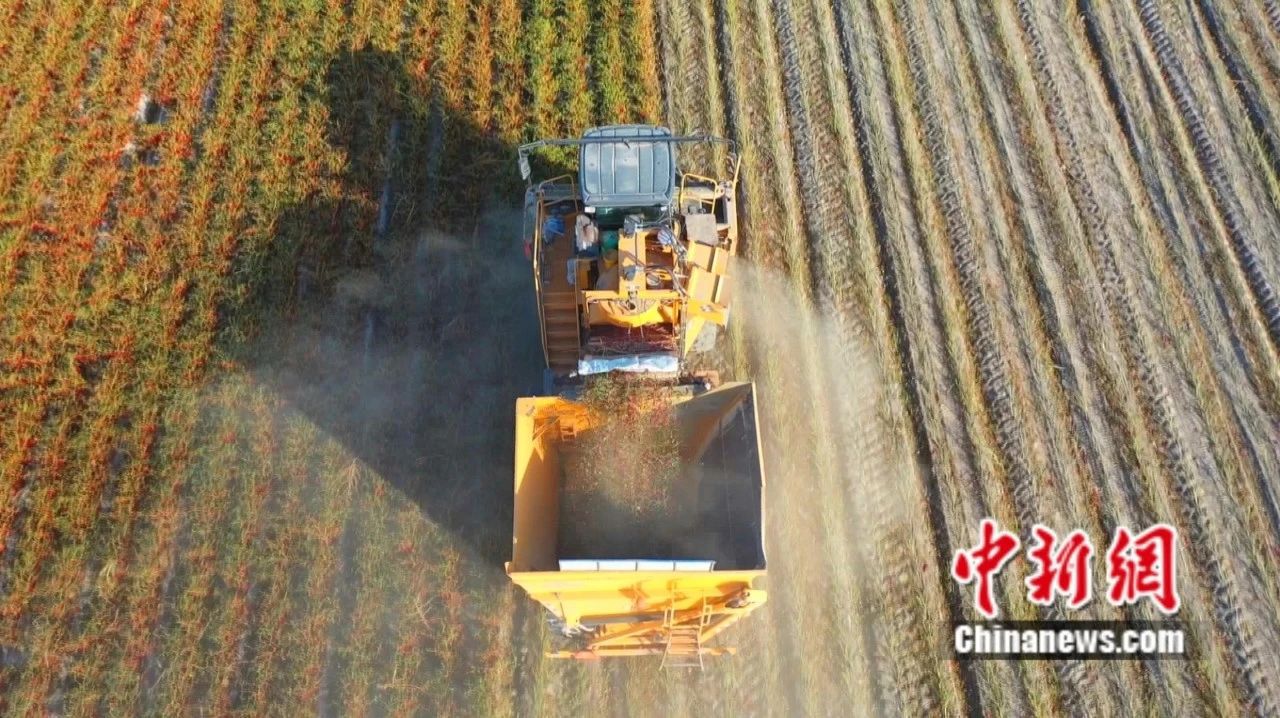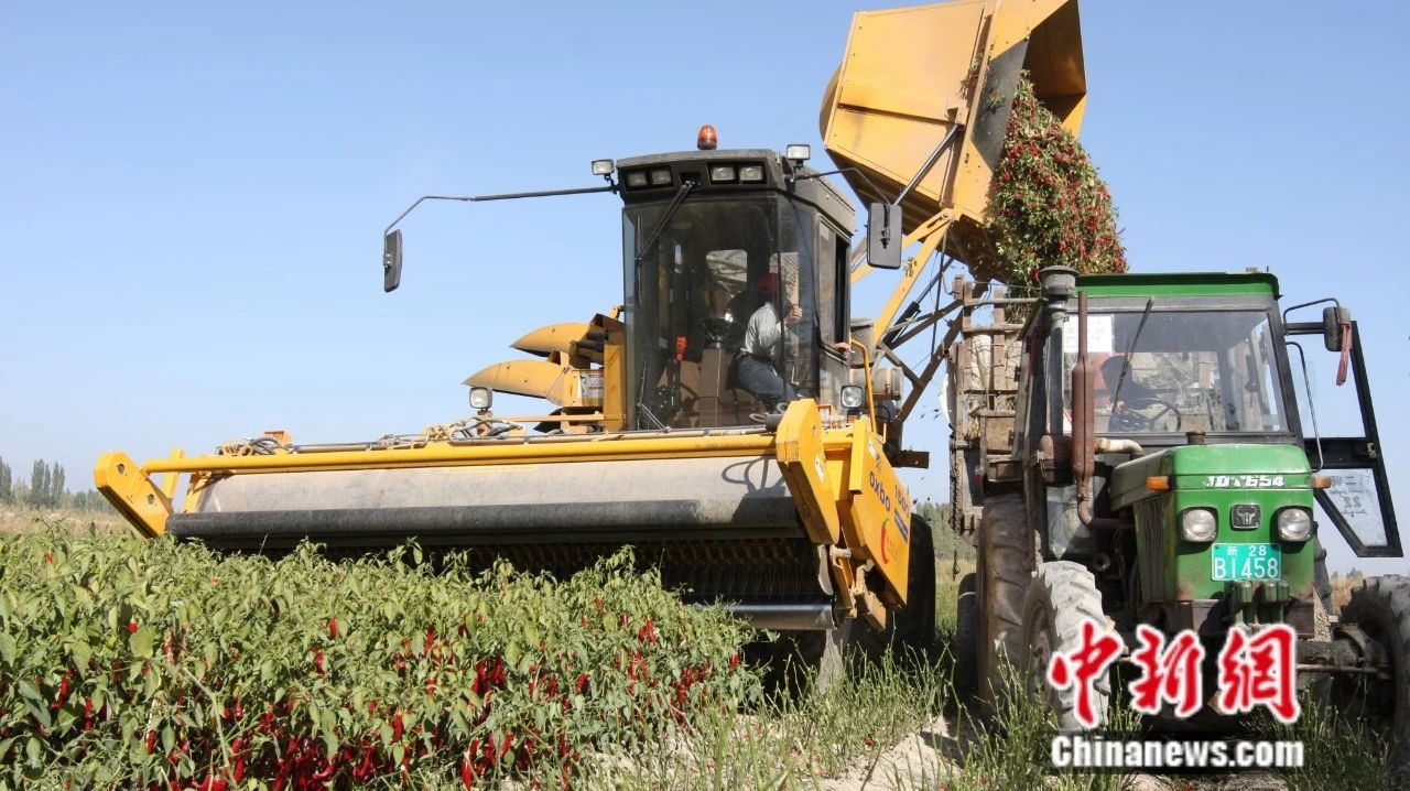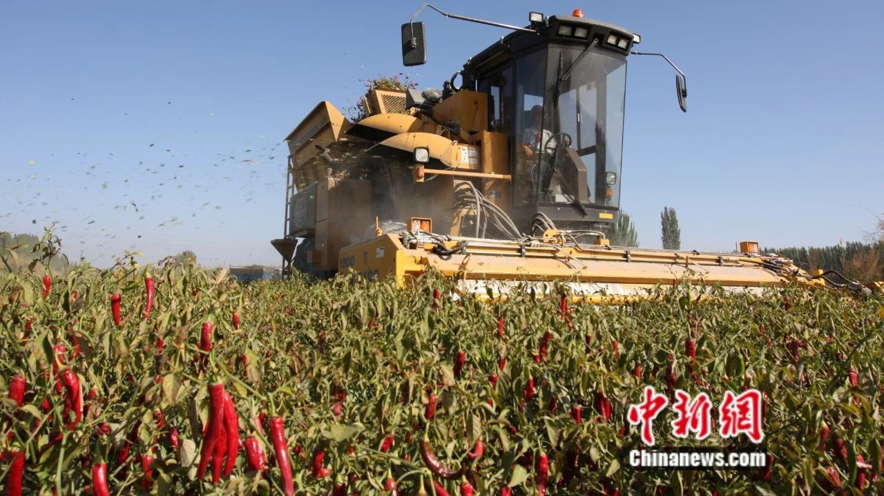 焉耆縣機械采收工業(yè)色素辣椒。楊志榮 攝
