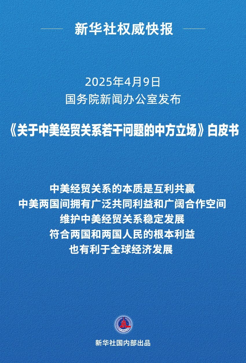 國務院新聞辦公室4月9日發(fā)布《關于中美經貿關系若干問題的中方立場》白皮書,澄清中美經貿關系事實,闡明中方對相關問題的政策立場。