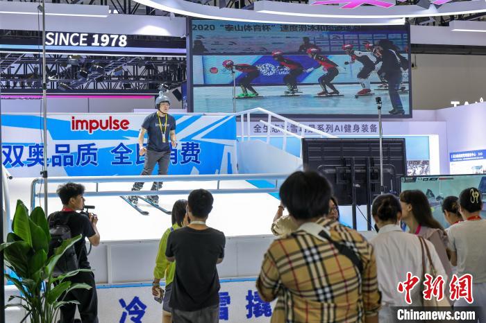 4月11日,第五屆中國國際消費(fèi)品博覽會即將開展,企業(yè)推出具有AI功能的滑雪模擬機(jī)。中新社記者 駱云飛 攝