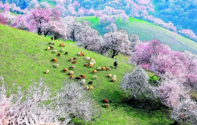 這是大自然獨(dú)有的饋贈(zèng)。這片廣袤的土地上,孕育著壯觀的杏樹(shù)群落,更有14世紀(jì)遺留下來(lái)的原始野杏林。每年3月下旬,從吐魯番盆地到帕米爾高原再到伊犁河谷,杏花次第開(kāi)放。它耐旱、抗寒、不懼貧瘠,以頑強(qiáng)的生命力將根系深深扎進(jìn)大地,綻放出明艷繁茂、縱情熱烈的花朵。