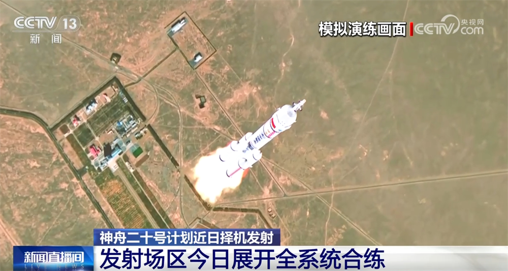 神舟二十號(hào)船箭組合體已于4月16日轉(zhuǎn)運(yùn)至發(fā)射區(qū),計(jì)劃將于近日擇機(jī)發(fā)射。4月20日,發(fā)射場(chǎng)區(qū)組織各單位展開全系統(tǒng)合練。