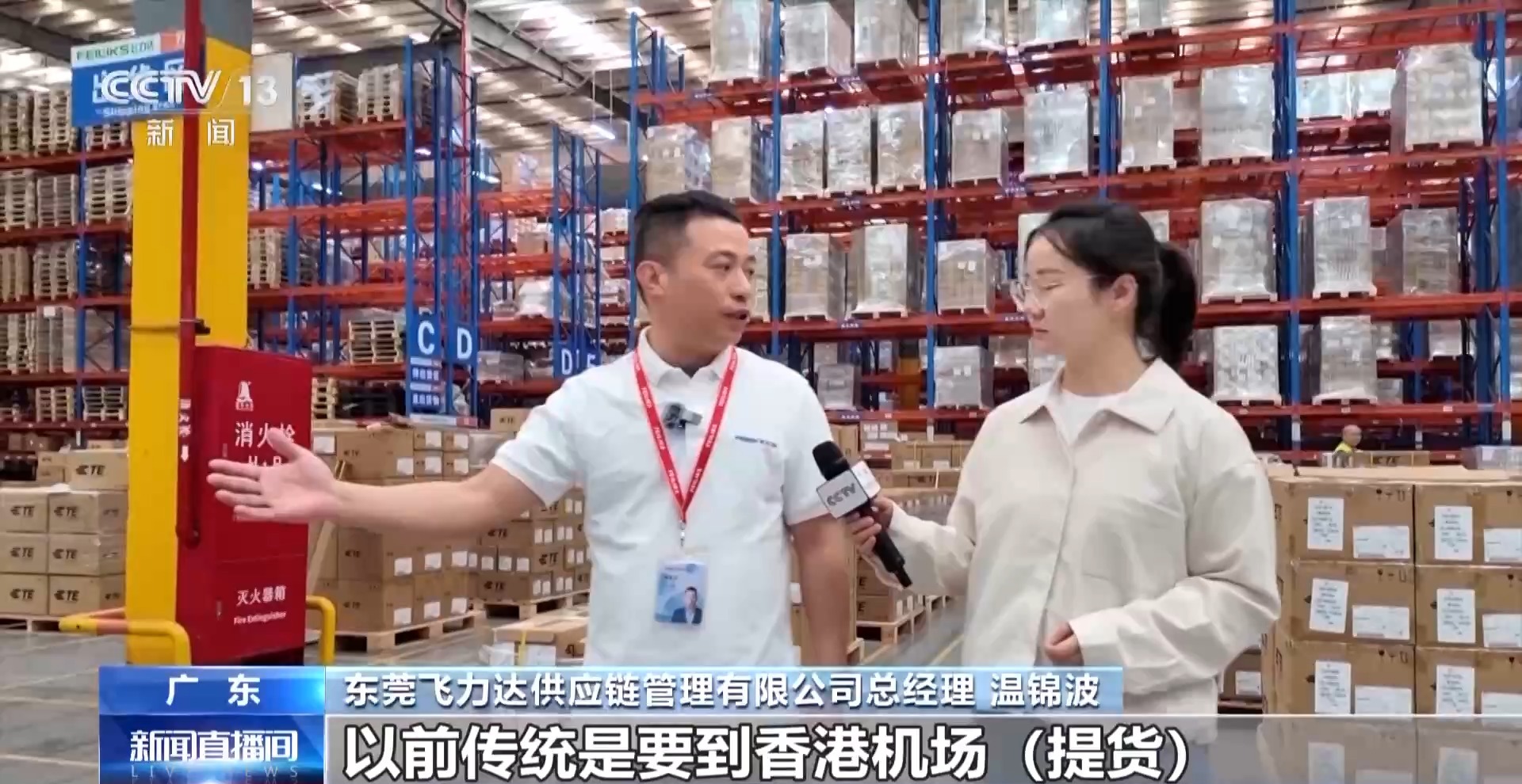 東莞飛力達(dá)供應(yīng)鏈管理有限公司總經(jīng)理 溫錦波:以前傳統(tǒng)是要到香港機(jī)場提貨,現(xiàn)在不用拆包、不用申報,直接拉到空港中心,再進(jìn)行一站式的進(jìn)口申報。在我們家門口500米,就可以提回來倉庫,非常方便。