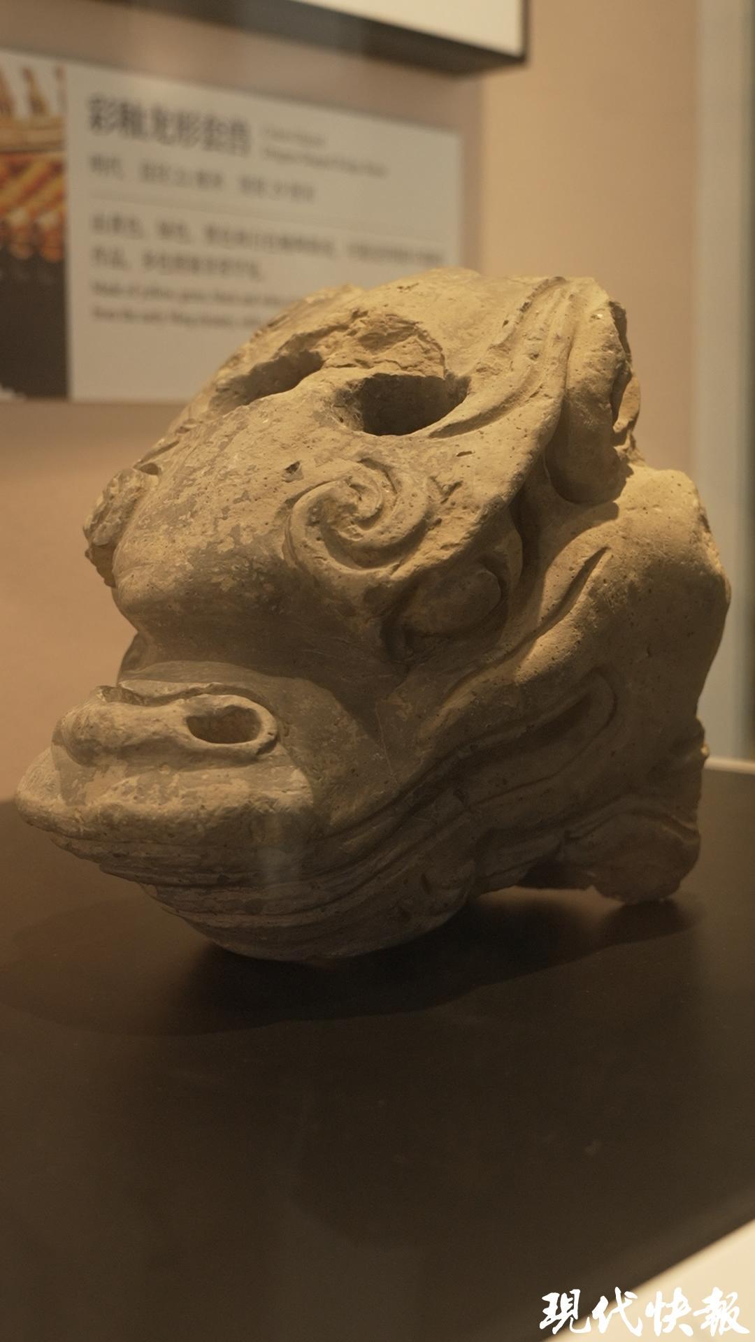 另一件捐贈(zèng)的龍形垂獸,是古建筑屋脊重要構(gòu)件。這尊垂獸雖未施釉,但其龍嘴怒張、龍眼圓睜,栩栩如生,盡顯威嚴(yán)神韻。